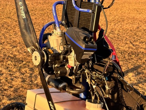 Einziges Doppelsitzer-Trike für Drachen unter 120 kg! Medicalfrei! Kompatibel mit La Mouette und vielen anderen Flächen. Der Motor ist ein Pollini Thor 303 mit 38 PS, Baujahr 2023 – mi…